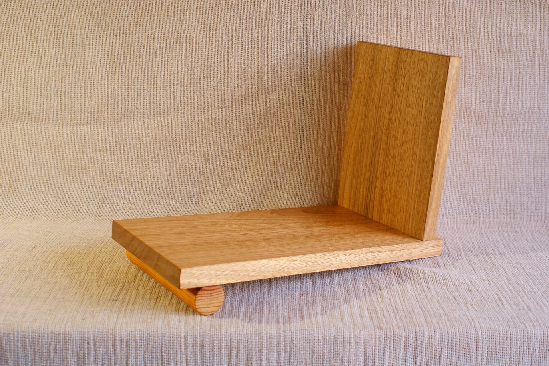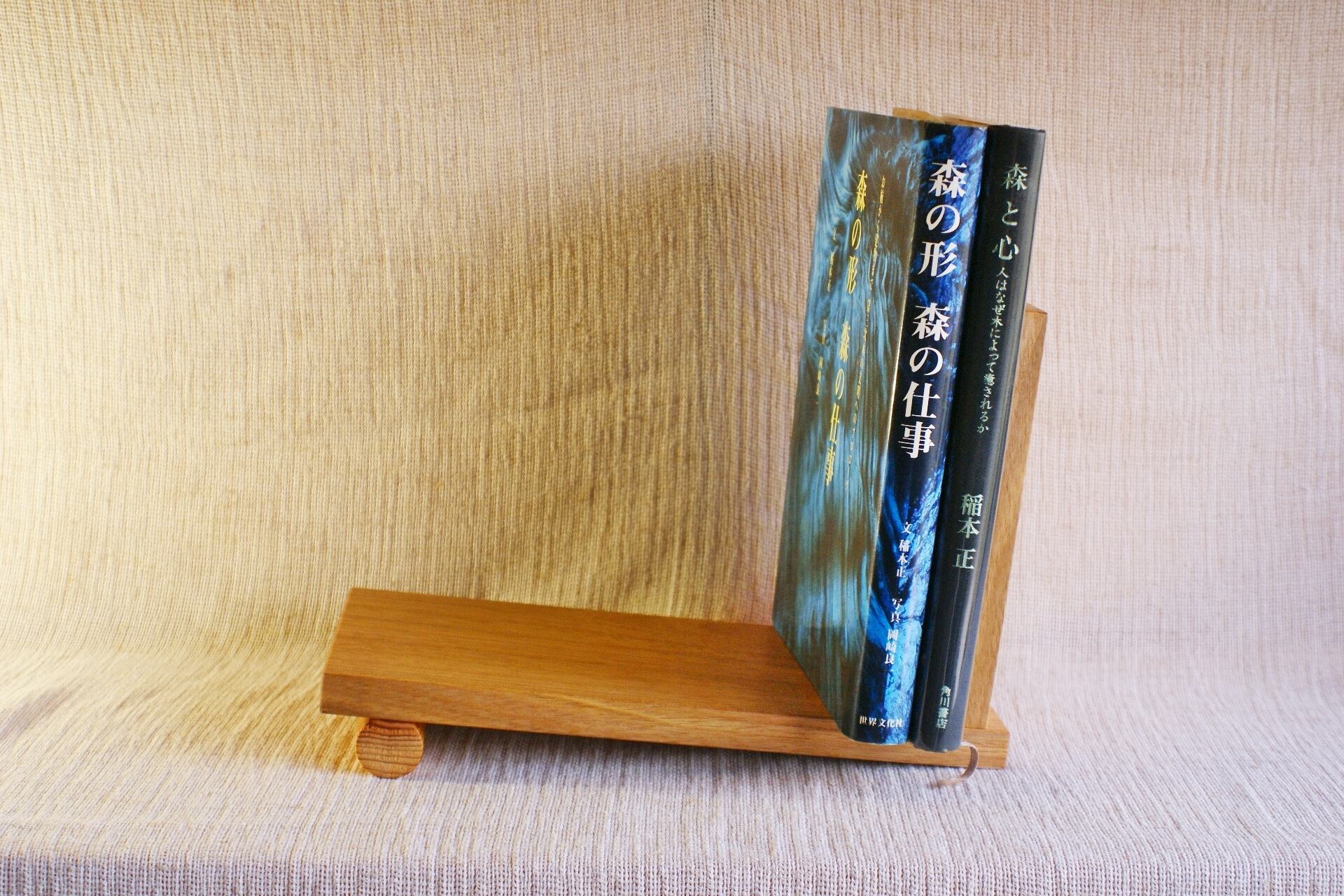 シンプルなデザインのブックスタンド くるみ材のすっきりした柾目の凛としたデザインで お気に入りの本をインテリアにします。 二分割でお届けします。 プラスドライバーにて付属の木ネジを固定してください。 幅12cm×長25cm×高17cm
